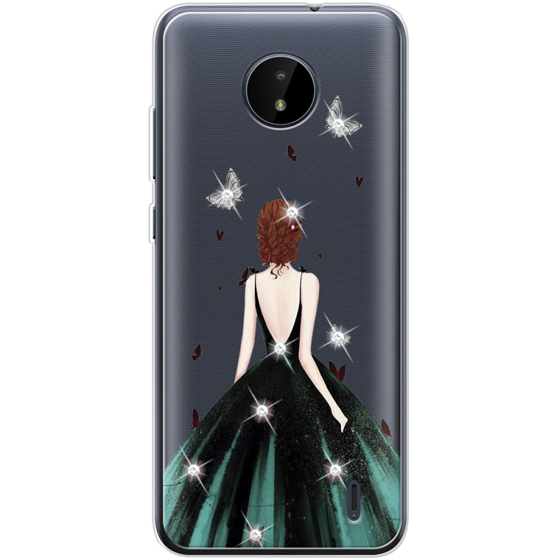 Чехол со стразами Nokia C20 Girl in the green dress