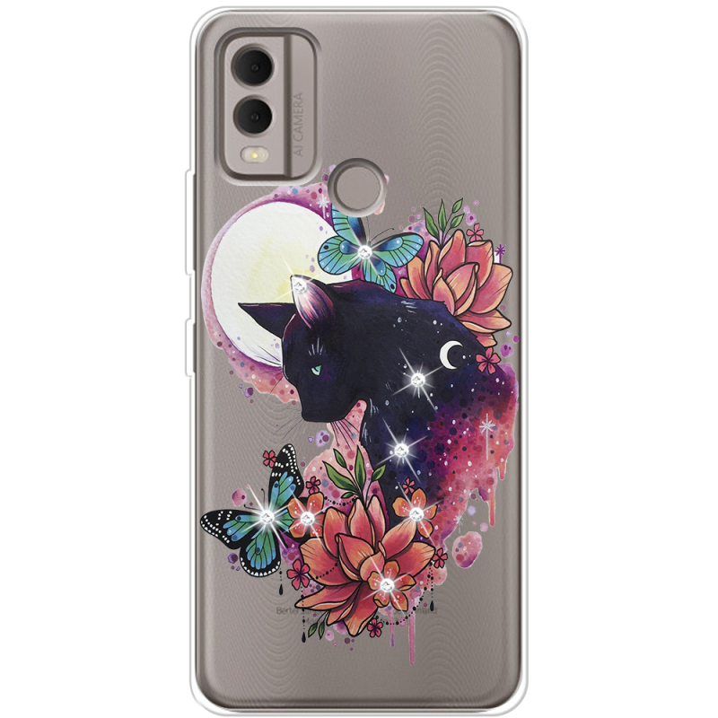 Чехол со стразами Nokia C22 Cat in Flowers