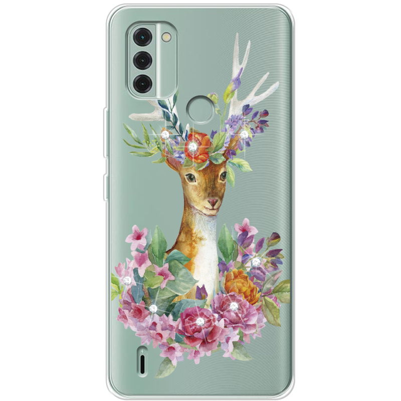 Чехол со стразами Nokia C31 Deer with flowers