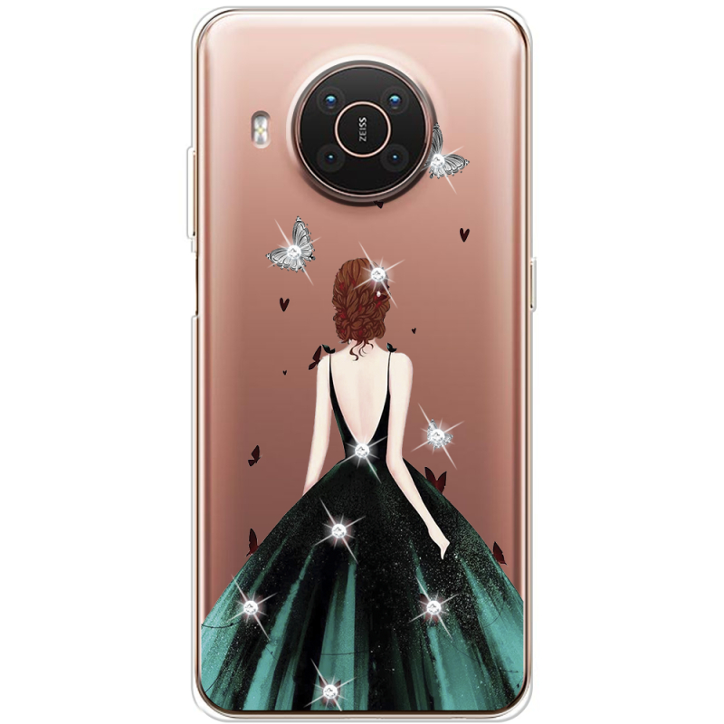 Чехол со стразами Nokia X20 Girl in the green dress