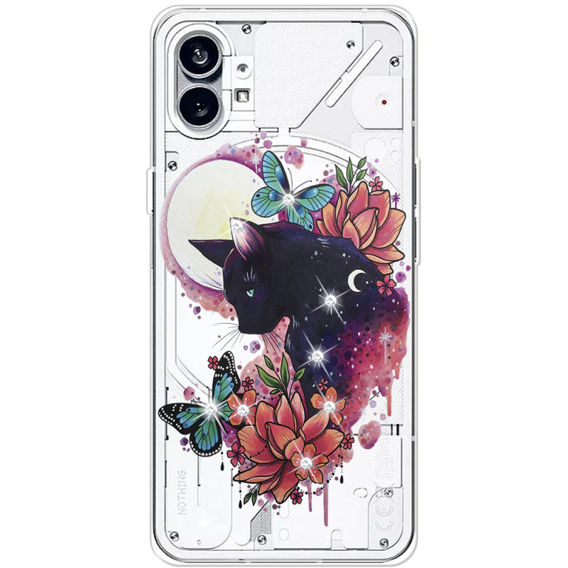 Чехол со стразами Nothing Phone (1) Cat in Flowers