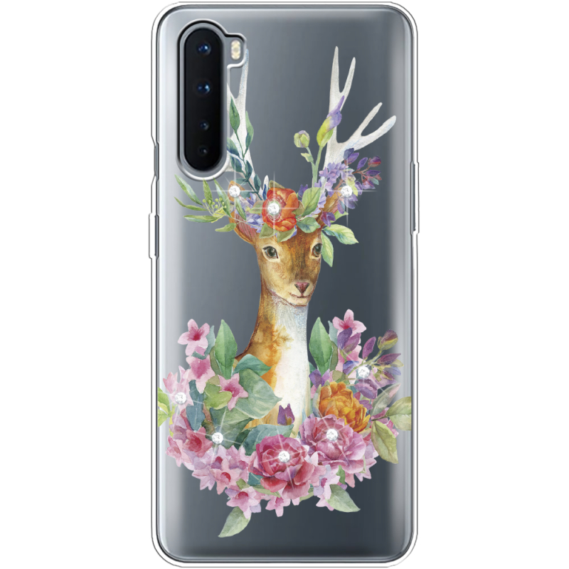 Чехол со стразами OnePlus Nord Deer with flowers