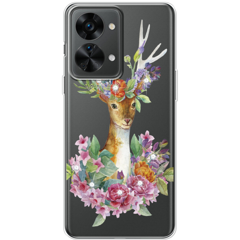Чехол со стразами OnePlus Nord 2T 5G Deer with flowers