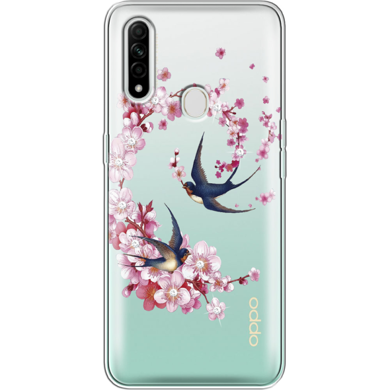 Чехол со стразами OPPO A31 Swallows and Bloom