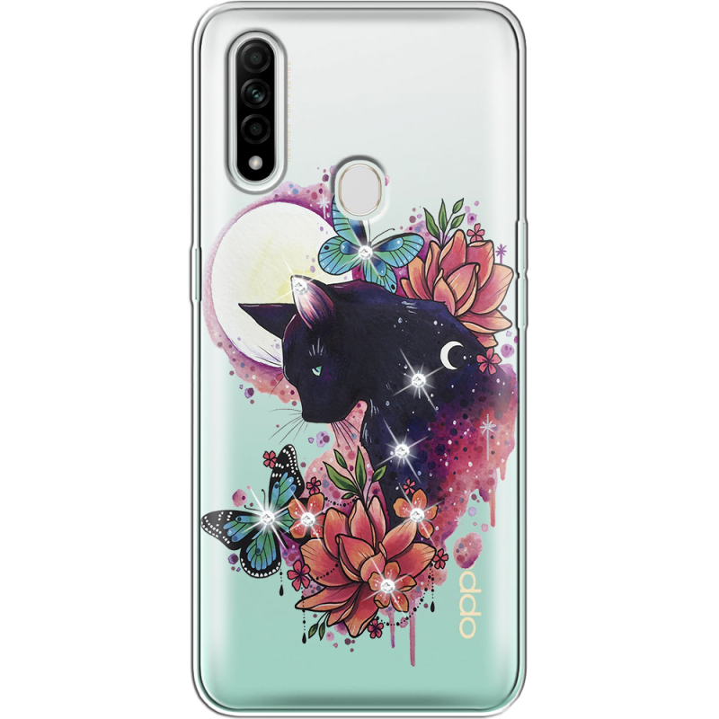 Чехол со стразами OPPO A31 Cat in Flowers