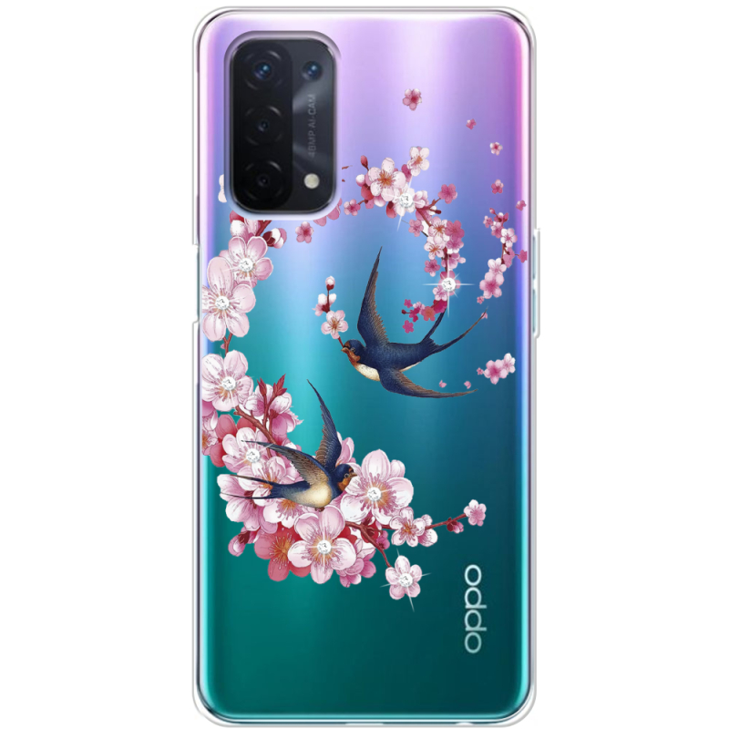 Чехол со стразами OPPO A54 5G Swallows and Bloom