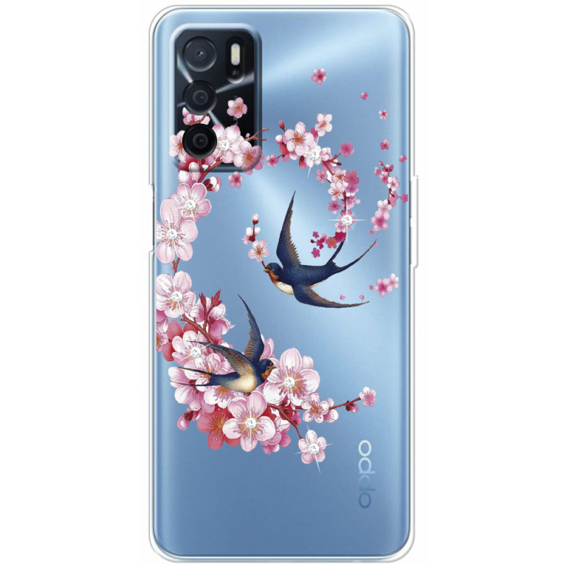 Чехол со стразами OPPO A54s Swallows and Bloom