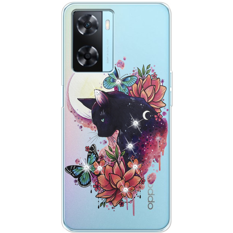 Чехол со стразами OPPO A57s Cat in Flowers
