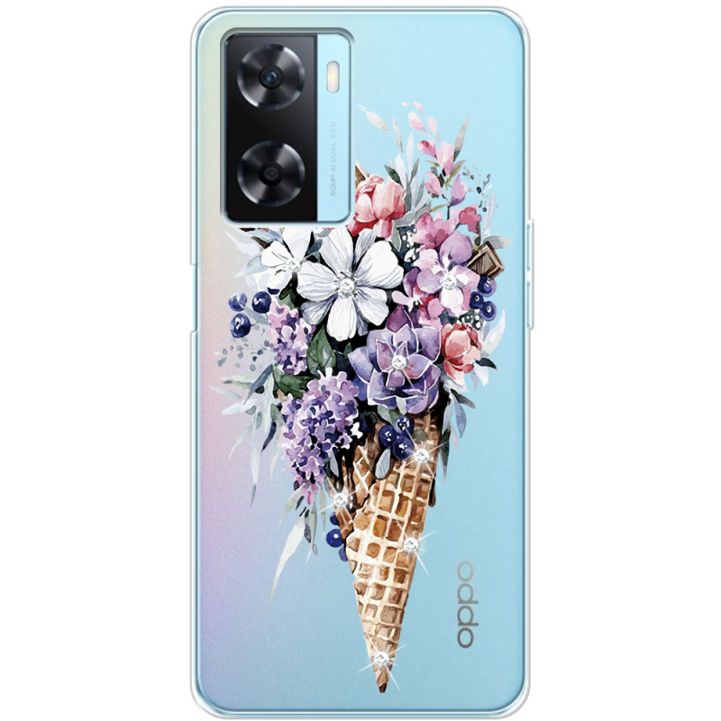 Чехол со стразами OPPO A57s Ice Cream Flowers