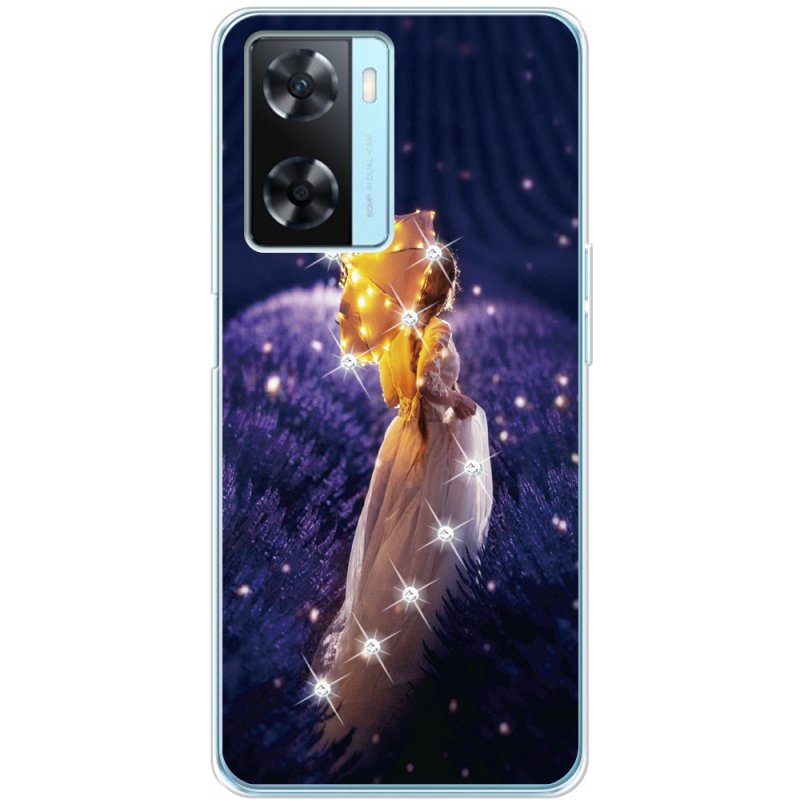 Чехол со стразами OPPO A57s Girl with Umbrella