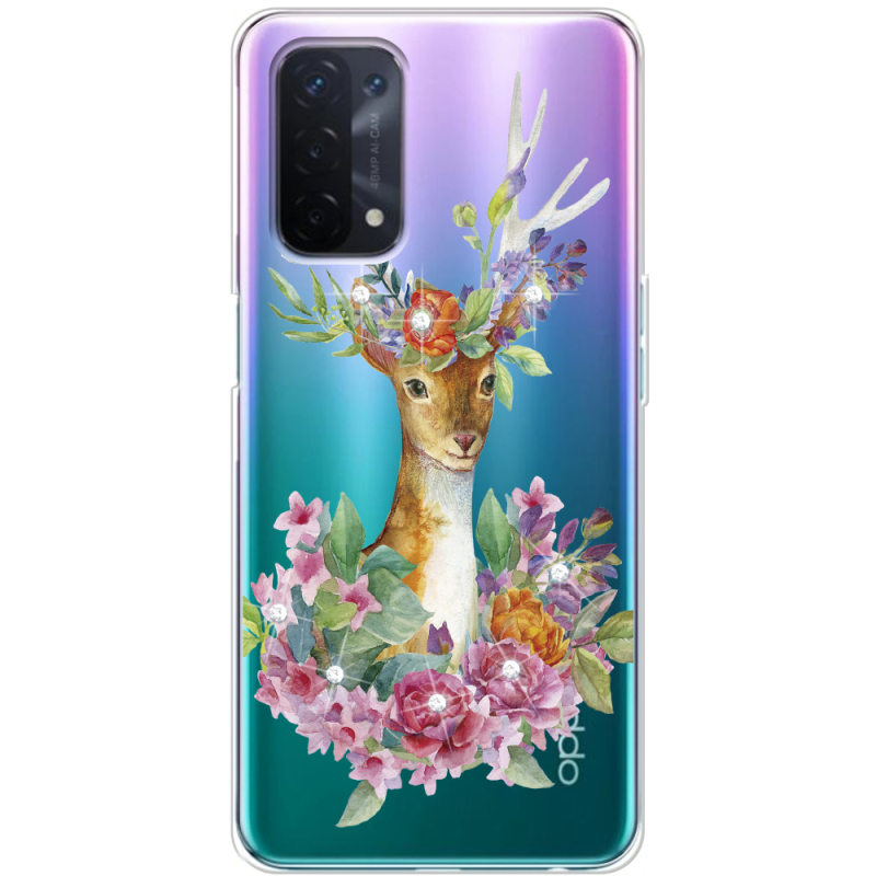 Чехол со стразами OPPO A74 5G Deer with flowers