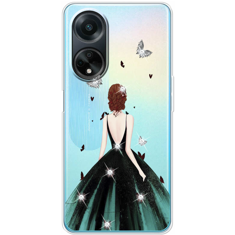 Чехол со стразами OPPO A98 5G Girl in the green dress