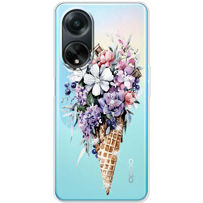 Чехол со стразами OPPO A98 5G Ice Cream Flowers