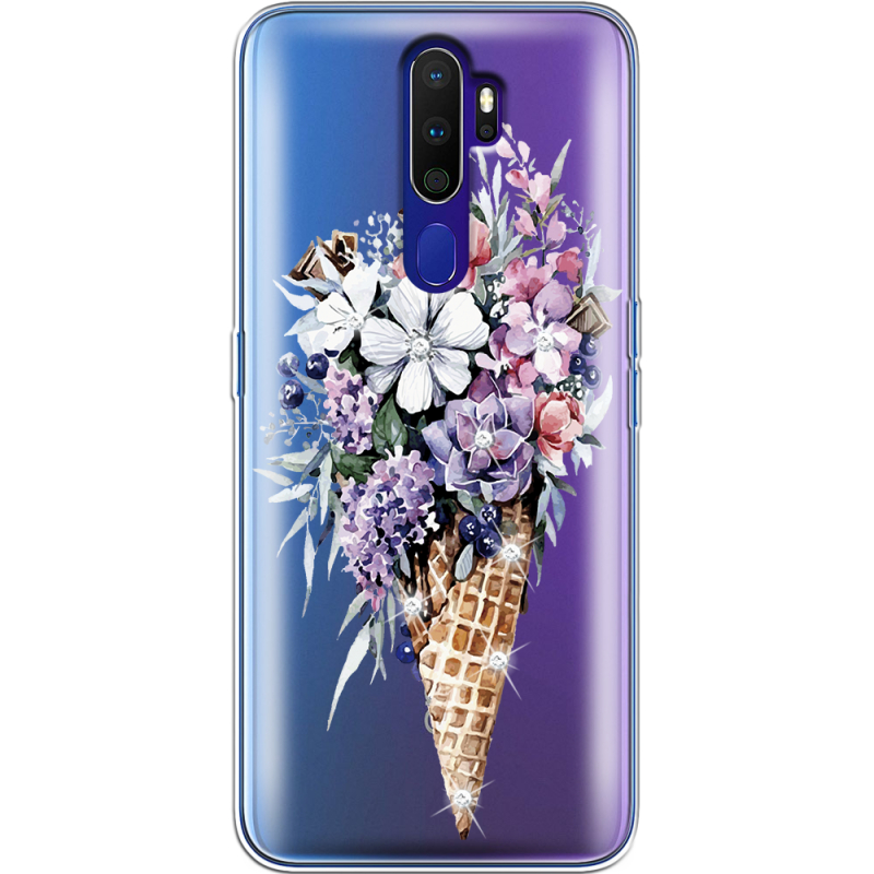 Чехол со стразами OPPO A9 2020 Ice Cream Flowers
