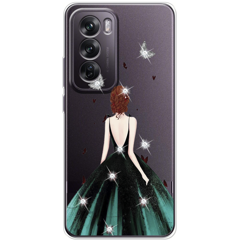Чехол со стразами OPPO Reno 12 Girl in the green dress