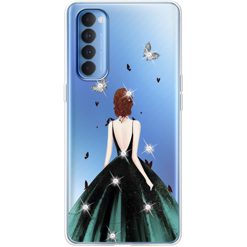 Чехол со стразами OPPO Reno 4 Pro Girl in the green dress