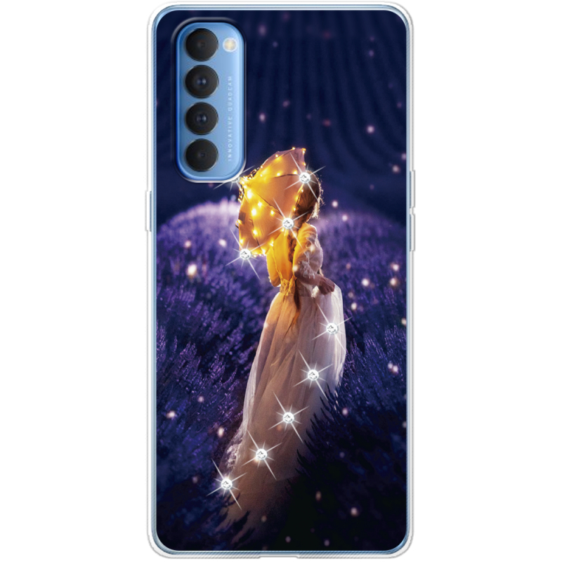 Чехол со стразами OPPO Reno 4 Pro Girl with Umbrella