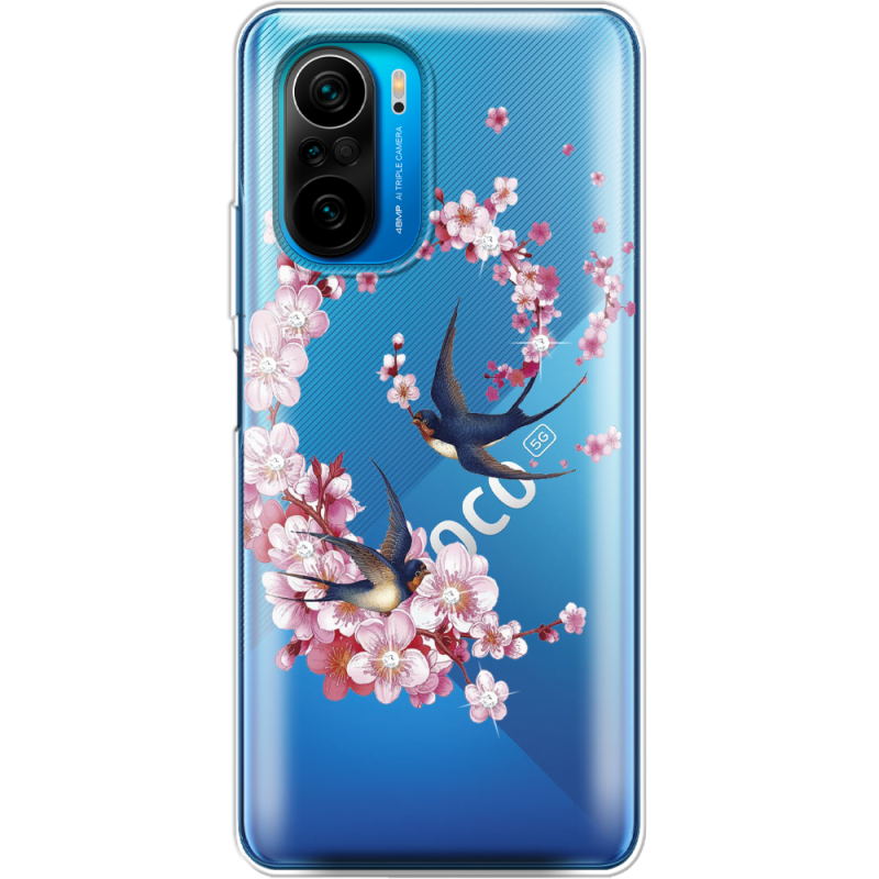 Чехол со стразами Poco F3 Swallows and Bloom