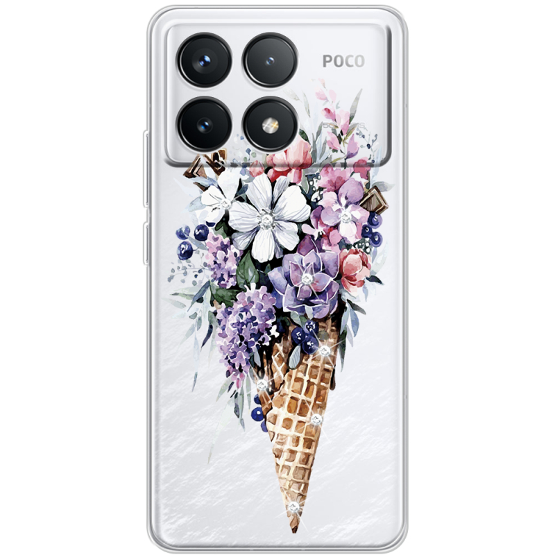 Чехол со стразами Poco F6 Pro Ice Cream Flowers