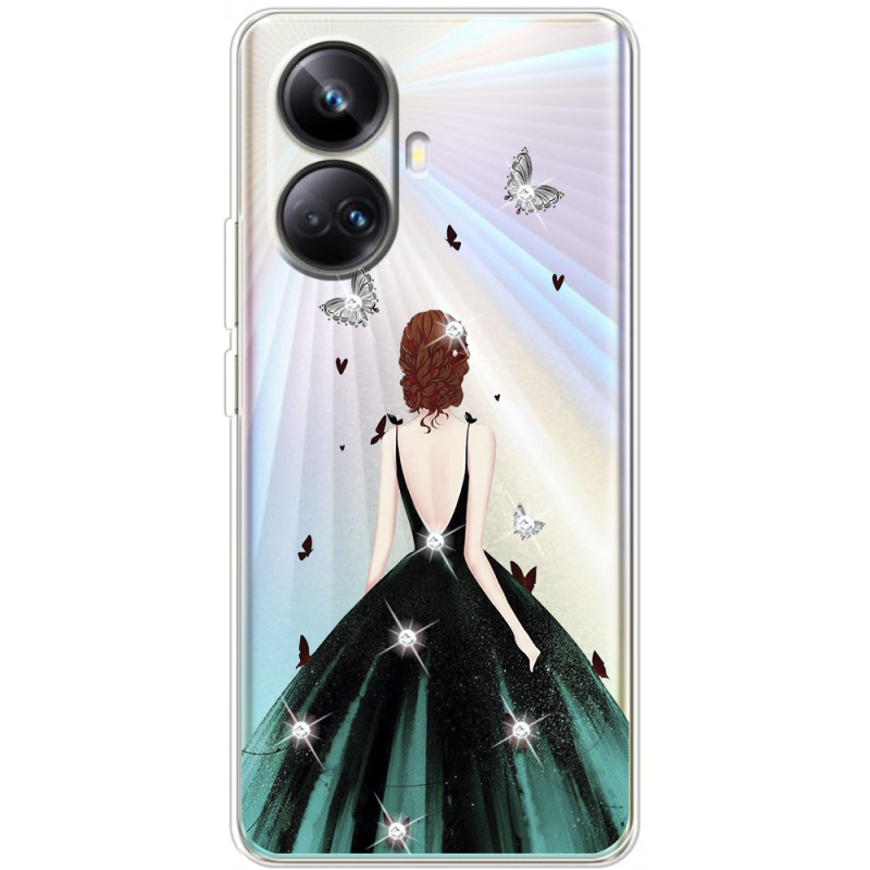 Чехол со стразами Realme 10 Pro Plus Girl in the green dress