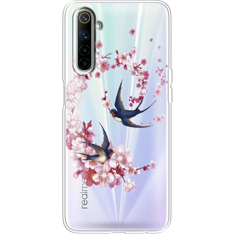 Чехол со стразами Realme 6 Swallows and Bloom