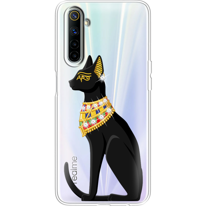 Чехол со стразами Realme 6 Egipet Cat