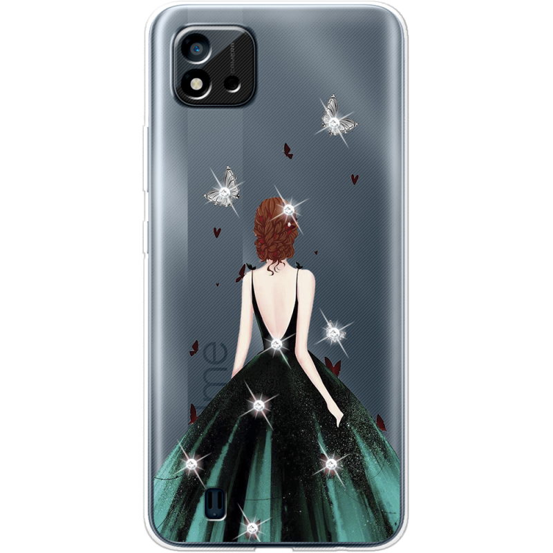 Чехол со стразами Realme C11 2021 Girl in the green dress