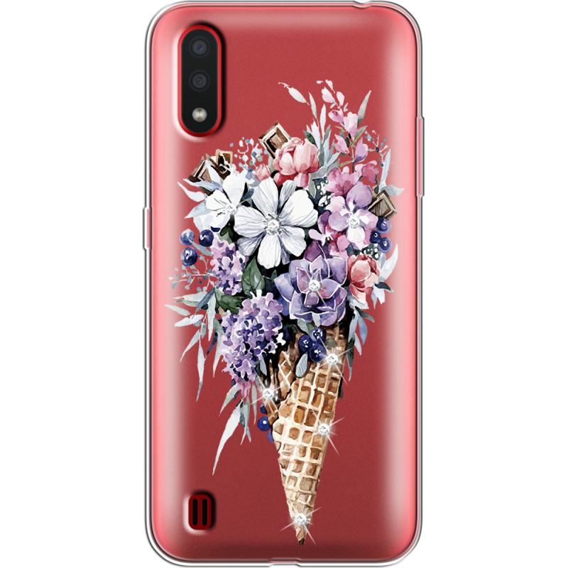 Чехол со стразами Samsung A015 Galaxy A01 Ice Cream Flowers