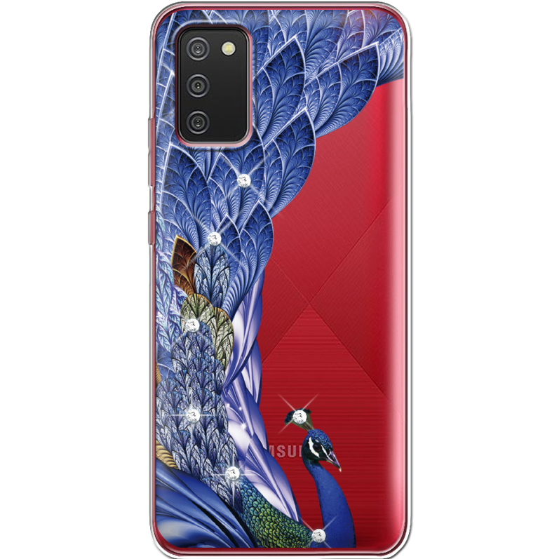 Чехол со стразами Samsung A025 Galaxy A02S Peafowl