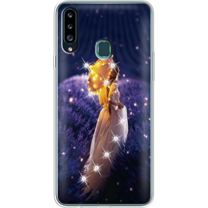 Чехол со стразами Samsung A207 Galaxy A20s Girl with Umbrella