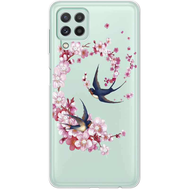 Чехол со стразами Samsung A225 Galaxy A22 Swallows and Bloom