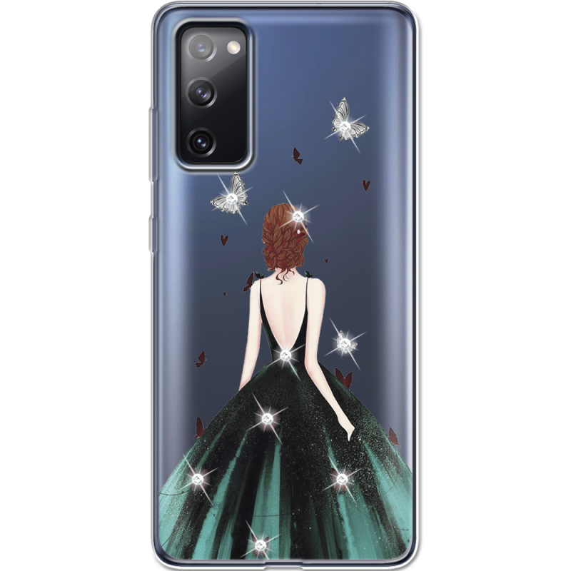 Чехол со стразами Samsung G780 Galaxy S20 FE Girl in the green dress