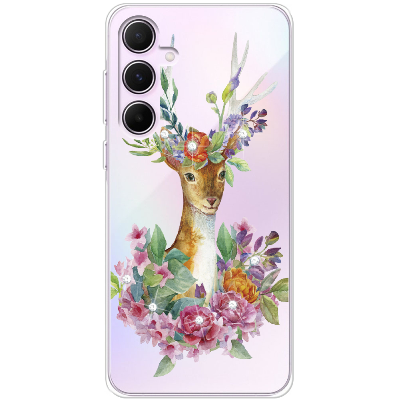 Чехол со стразами Samsung Galaxy A55 5G (A556) Deer with flowers