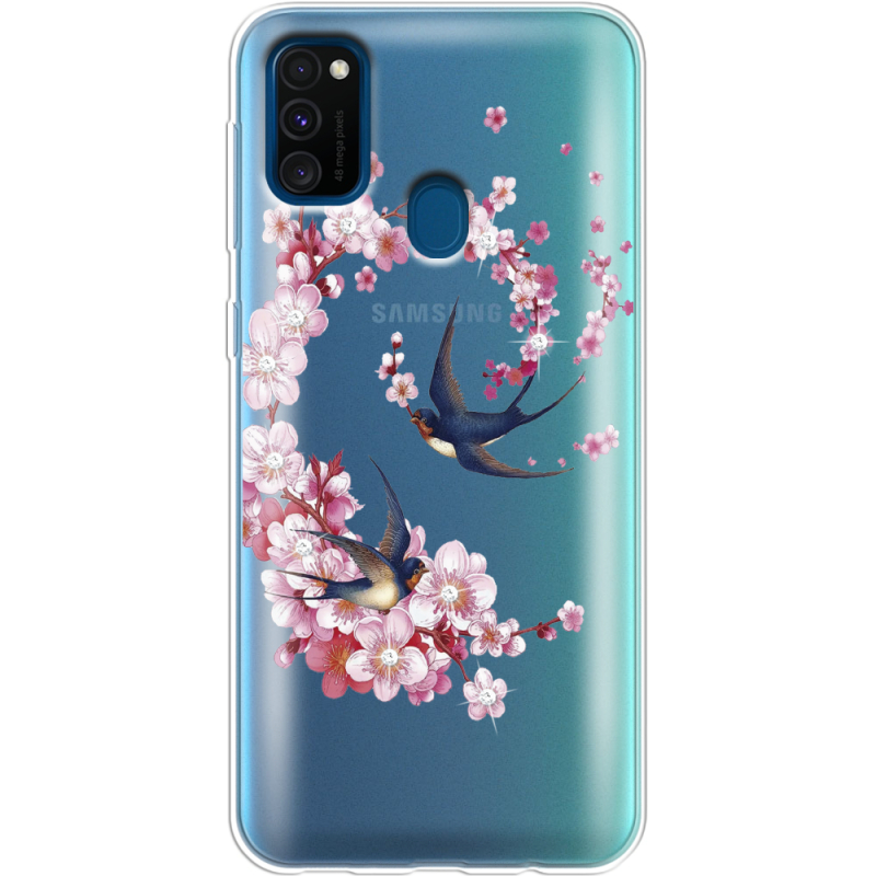 Чехол со стразами Samsung M307 Galaxy M30s Swallows and Bloom