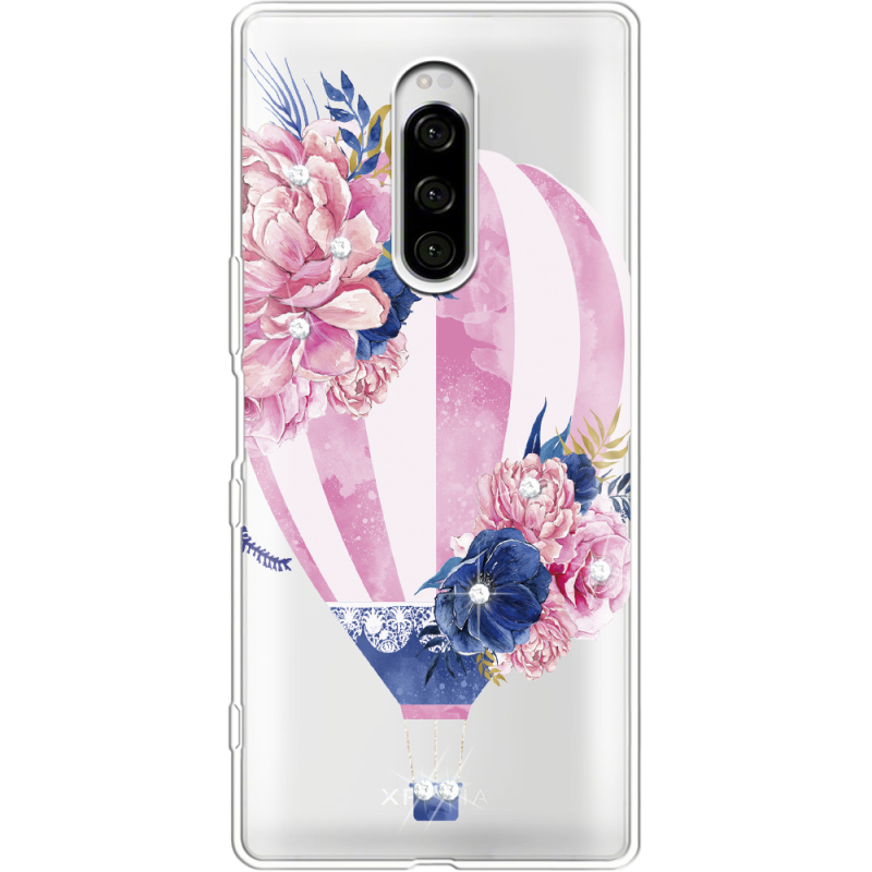 Чехол со стразами Sony Xperia 1 Pink Air Baloon