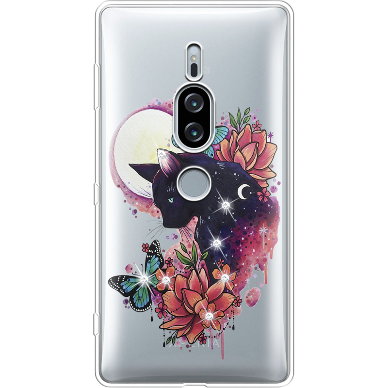 Чехол со стразами Sony Xperia XZ2 Premium H8166 Cat in Flowers