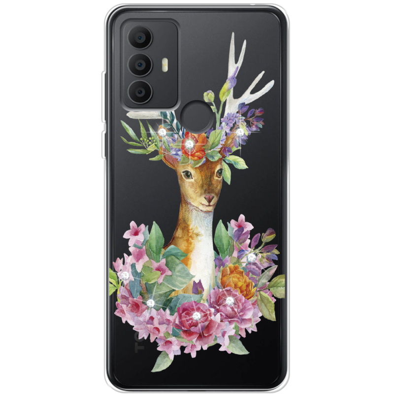 Чехол со стразами TCL 30 SE Deer with flowers