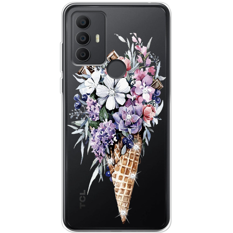 Чехол со стразами TCL 30 SE Ice Cream Flowers