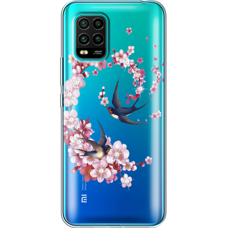 Чехол со стразами Xiaomi Mi 10 Lite Swallows and Bloom