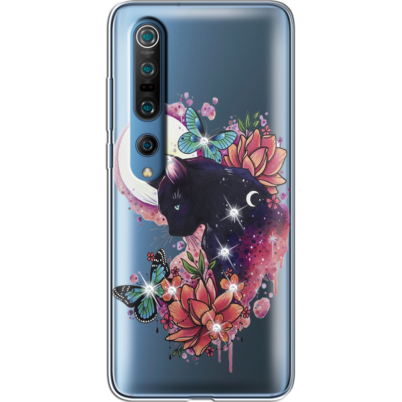 Чехол со стразами Xiaomi Mi 10 Pro Cat in Flowers