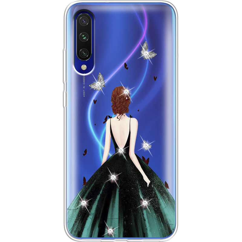Чехол со стразами Xiaomi Mi A3 Girl in the green dress
