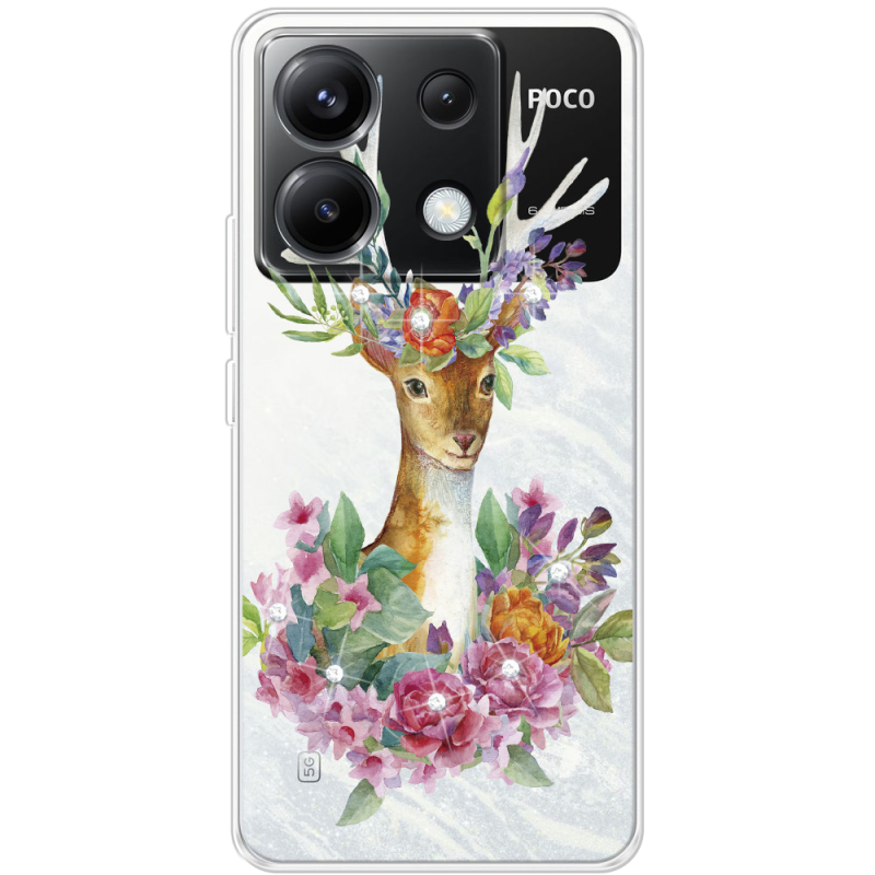 Чехол со стразами Xiaomi Poco X6 5G Deer with flowers