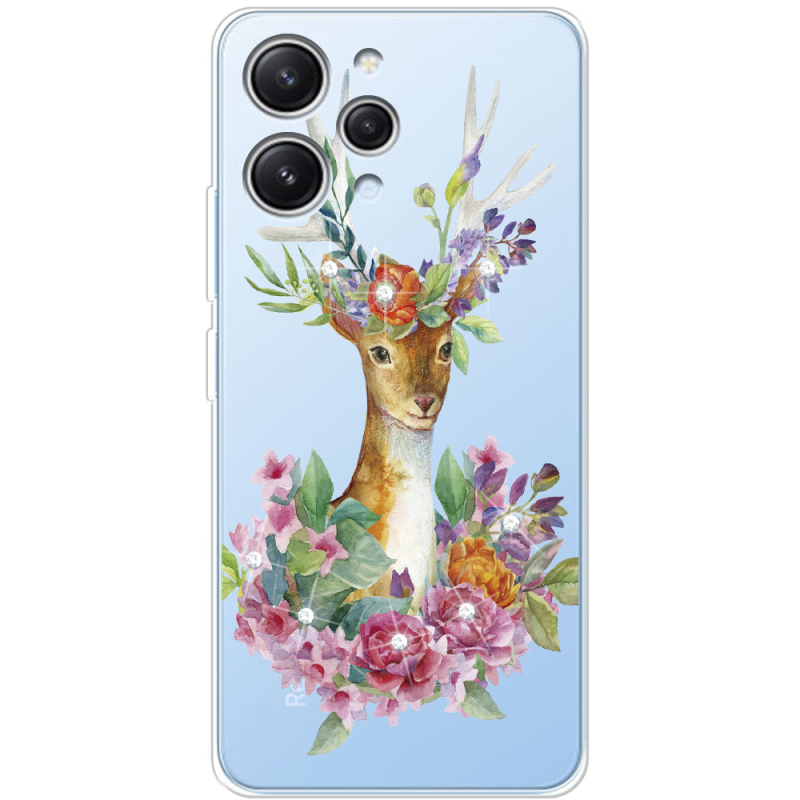 Чехол со стразами Xiaomi Redmi 12 Deer with flowers