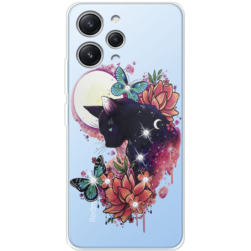 Чехол со стразами Xiaomi Redmi 12 Cat in Flowers