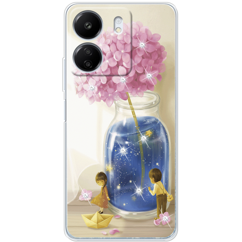 Чехол со стразами Xiaomi Redmi 13C Little Boy and Girl