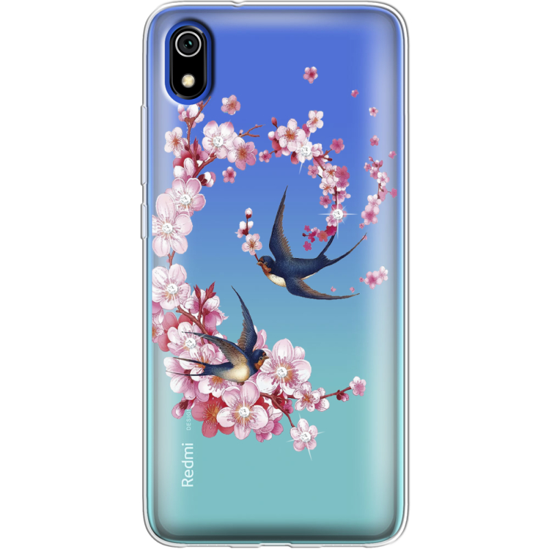 Чехол со стразами Xiaomi Redmi 7A Swallows and Bloom