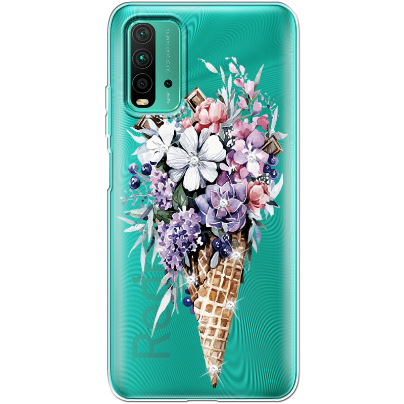 Чехол со стразами Xiaomi Redmi 9T Ice Cream Flowers