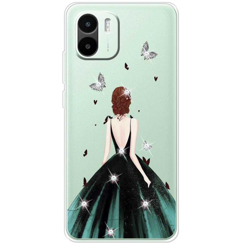 Чехол со стразами Xiaomi Redmi A1 Girl in the green dress