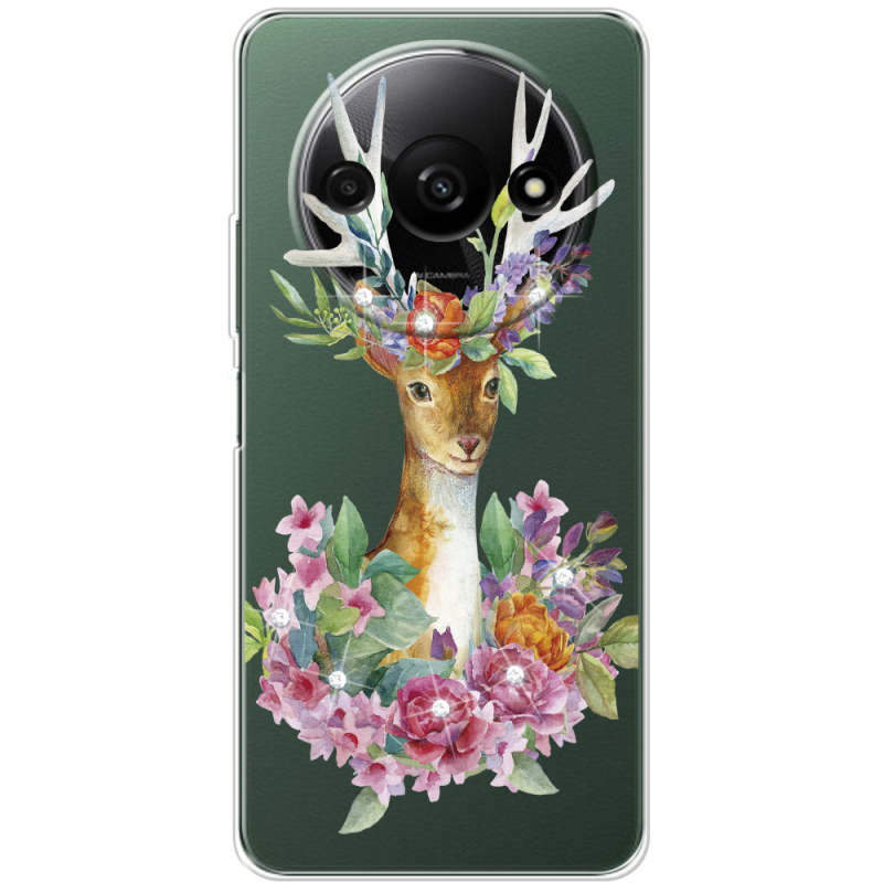 Чехол со стразами Xiaomi Redmi A3 Deer with flowers