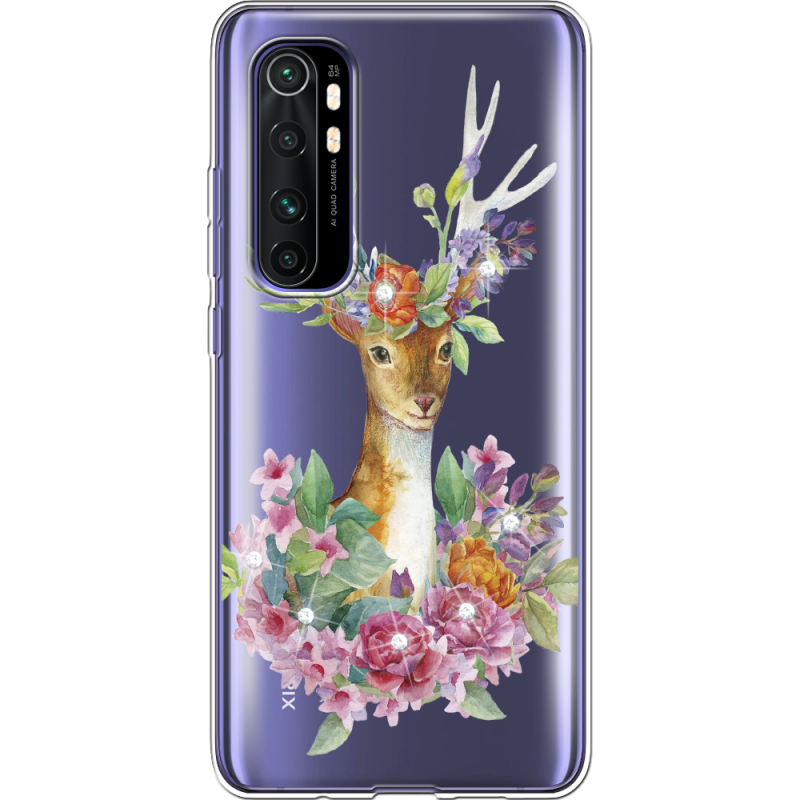 Чехол со стразами Xiaomi Mi Note 10 Lite Deer with flowers